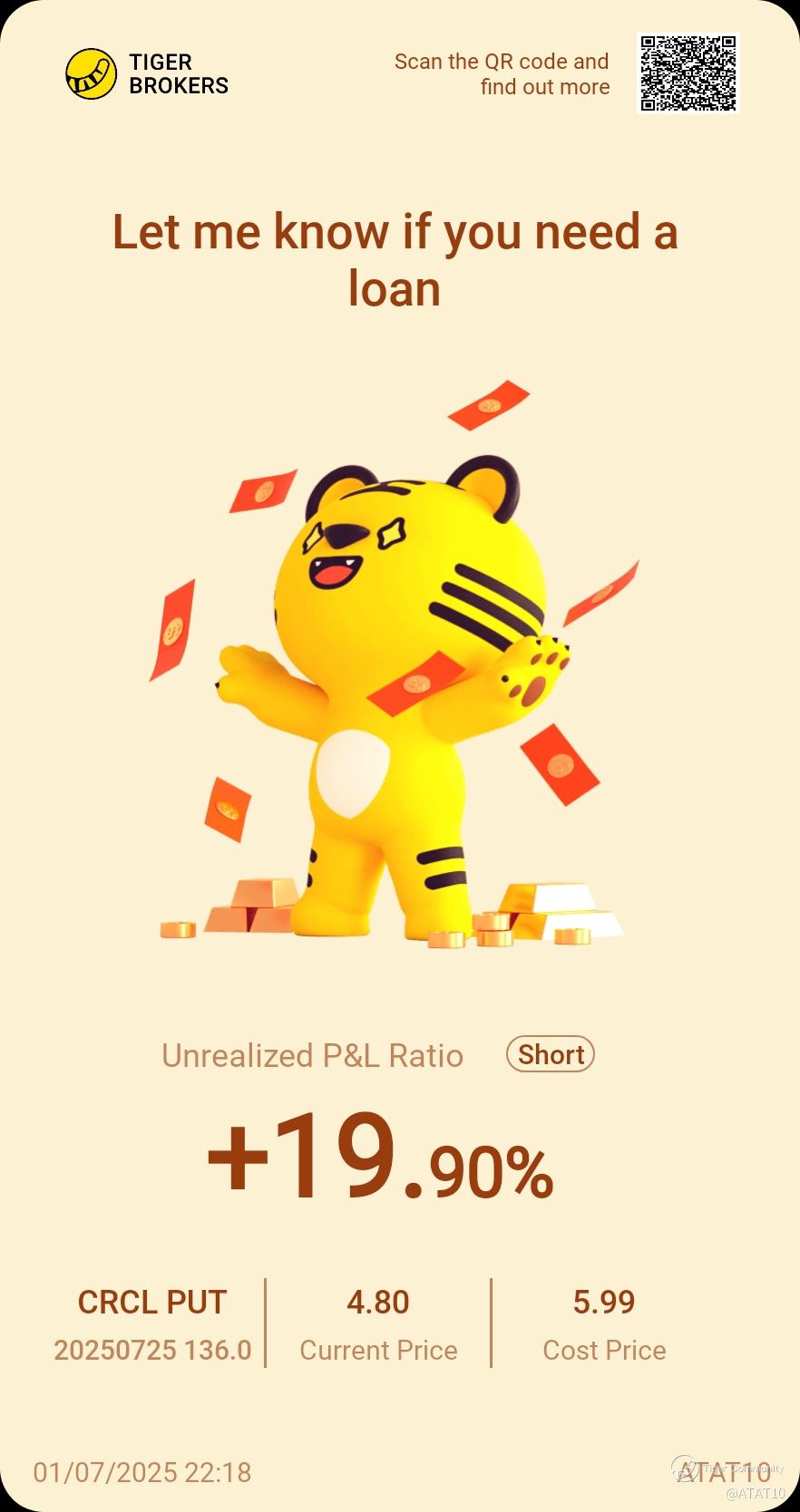 $CRCL 20250725 136.0 PUT$ First try on selling $136 Put. Should be quite safe to keep premium unless market really wanna push it down. đ