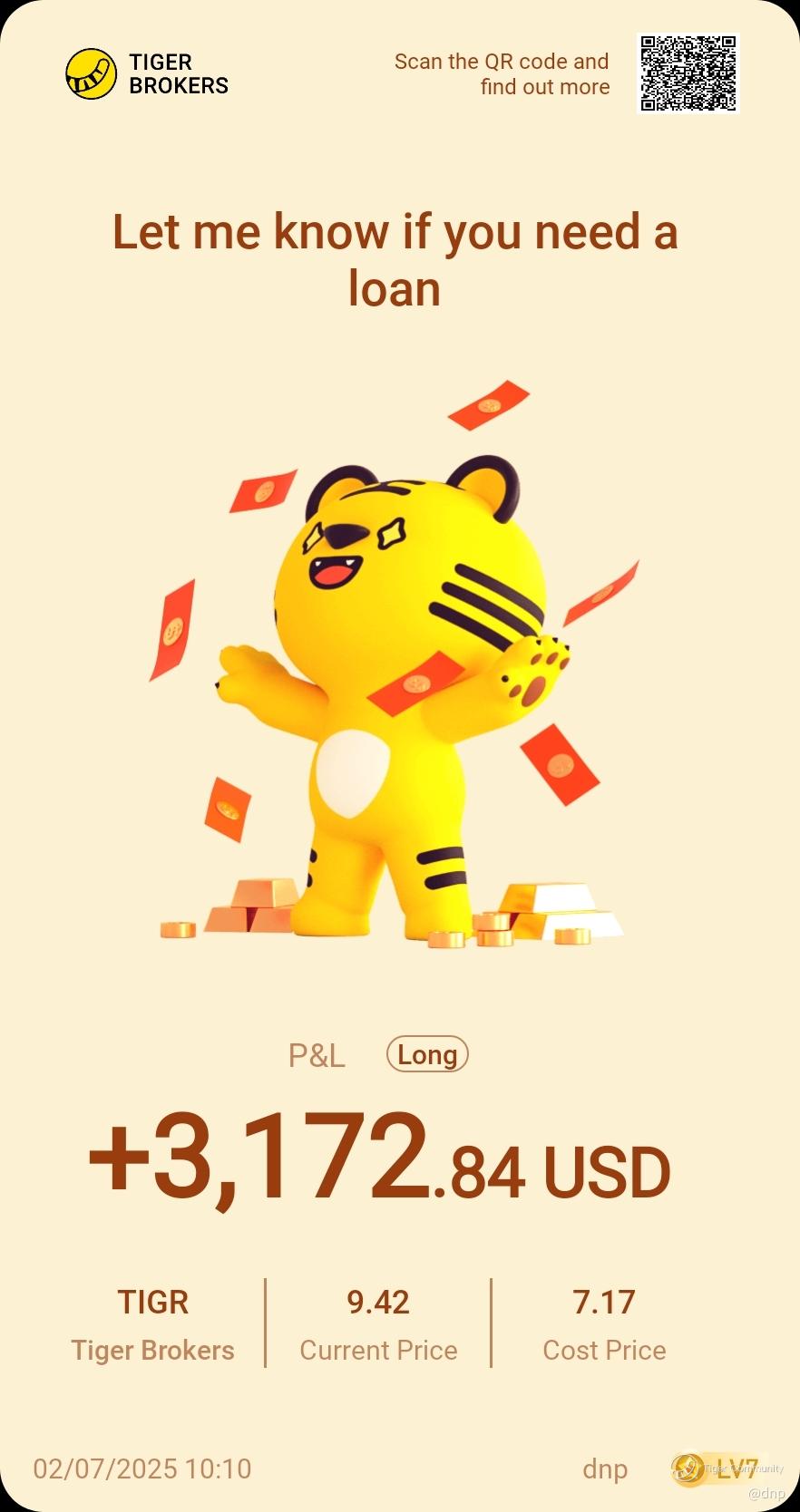 $Tiger Brokers(TIGR)$ my large winning stock cheers