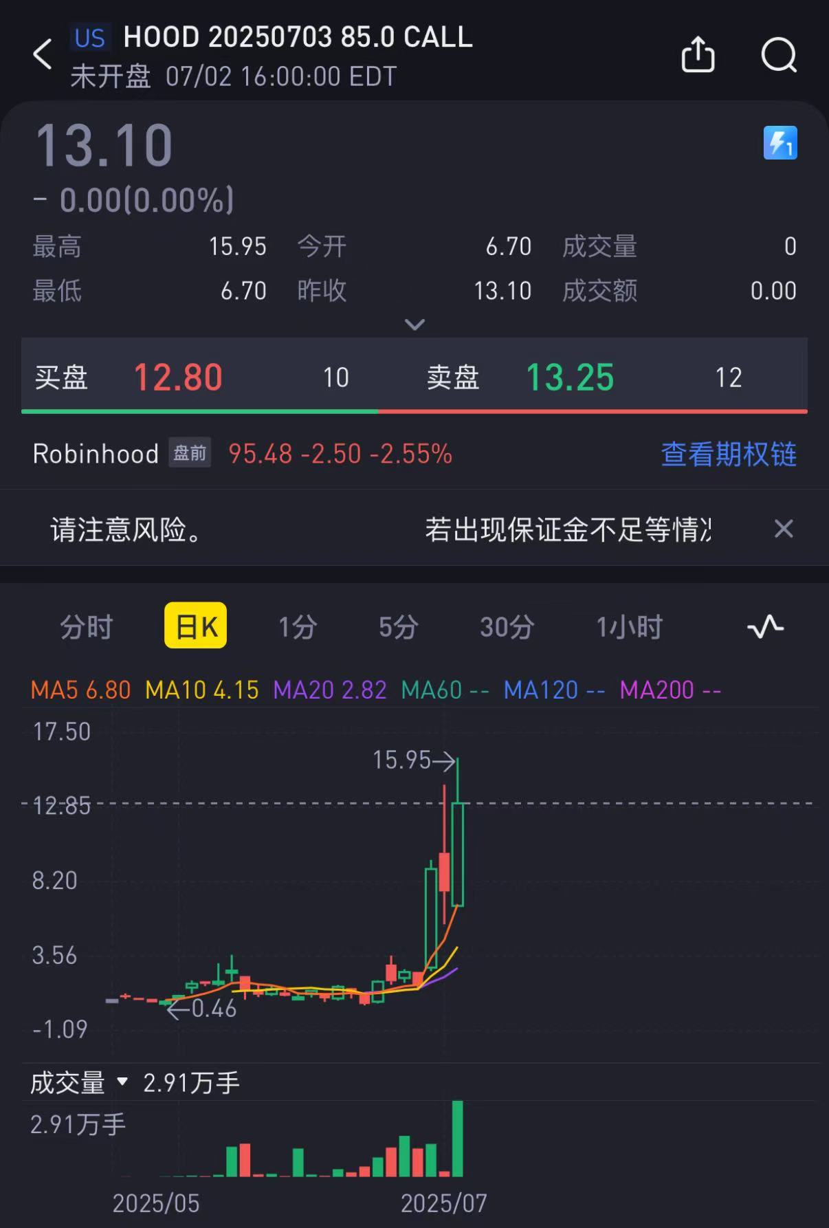 Sell call: $HOOD 20250711 110.0 CALL$