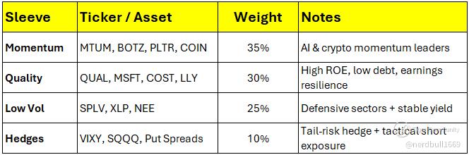 Volatility Trigger: If VIX > 25, increase low-vol sleeve by 10% and reduce momentum exposure.