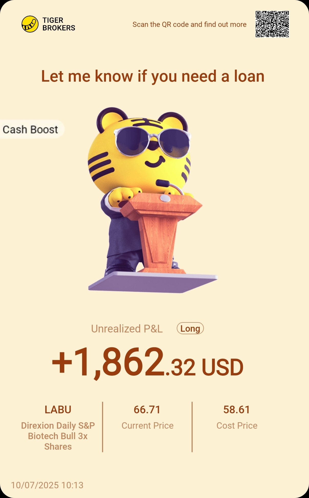 And we are also happy to see @BaronLyly made a profit of $1862 trading $Direxion Daily S&P Biotech Bull 3x Shares(LABU)$ through CBA.