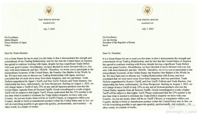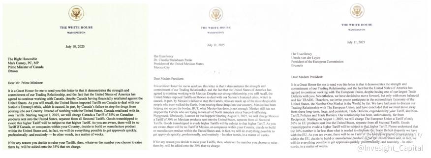 Shortly after, Trump also posted tariff letters on social media, targeting major U.S. trade partners: