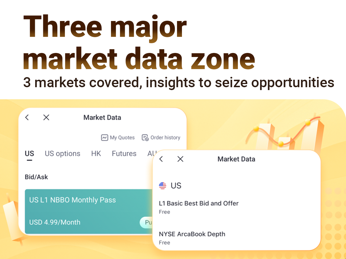 Access three major market data perks: real-time US Level 1 quotes, the NYSE Arca order book, and CME Level 1 futures data â giving you full visibility into the market and better timing on your trades.