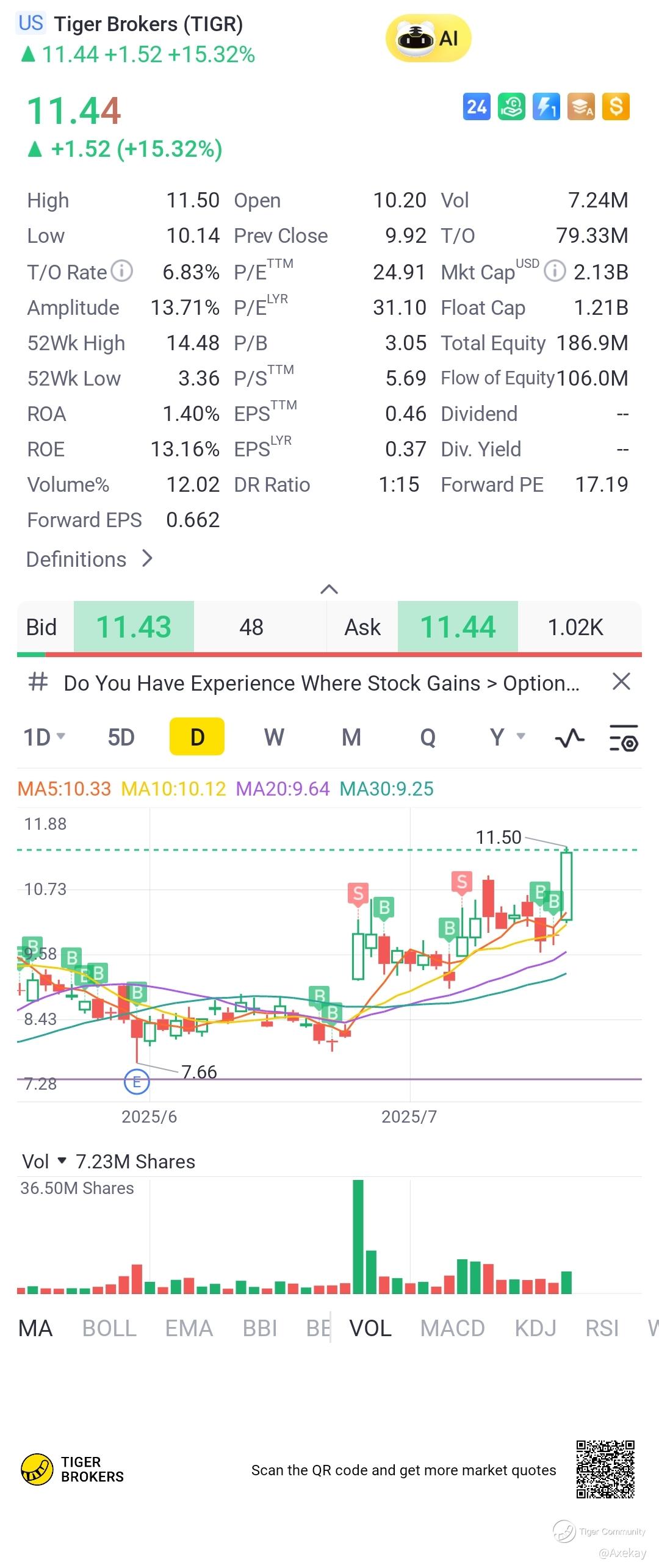 $Tiger Brokers(TIGR)$ this is truly a volatile stock but I am loving it [Shy] For those who have been following me for long, you will know that I have been well vested in TIGR since its peak (and downfall and slight recovery). Am I a bagholder? Yes, I am. But I also bought the dips after dips when it was plunging hence my cost price had averaged significantly down. This stock brought me on the path of investment journey and taught me painful lessons of investment. Hence, with the values derived from using TIGR services, I have very strong conviction that this stock will soar to a greater height. Not sure how do other TIGR users feel? [Grin]