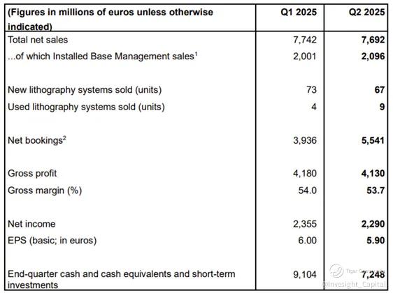 ASML posted better-than-expected results for the first half of 2025, underlining its dominance and profitability in the semiconductor equipment market. In Q2, revenue hit €7.7 billion, gross margin reached a strong 53.7%, and net income came in at €2.3 billion. The rebound in high-end system shipments and the stable performance of services and upgrade businesses stood out.