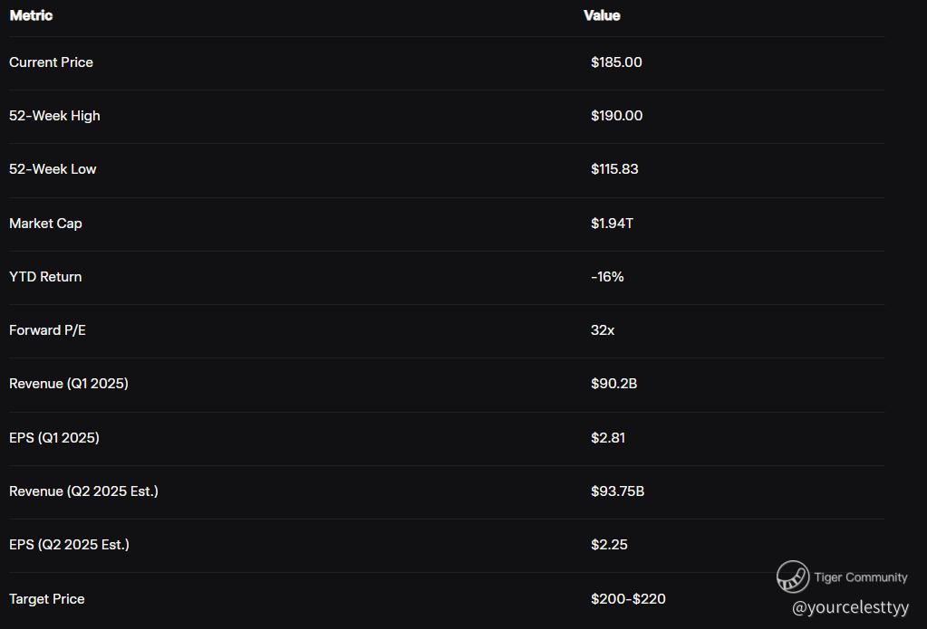 The stock’s 6.94% surge over the past five trading days, despite a 16% YTD decline, reflects investor confidence. If Q2 earnings beat expectations and guidance is strong, analysts see upside to $200-$220, a 8-19% gain. However, a miss or cautious outlook could test support at $170-$180.