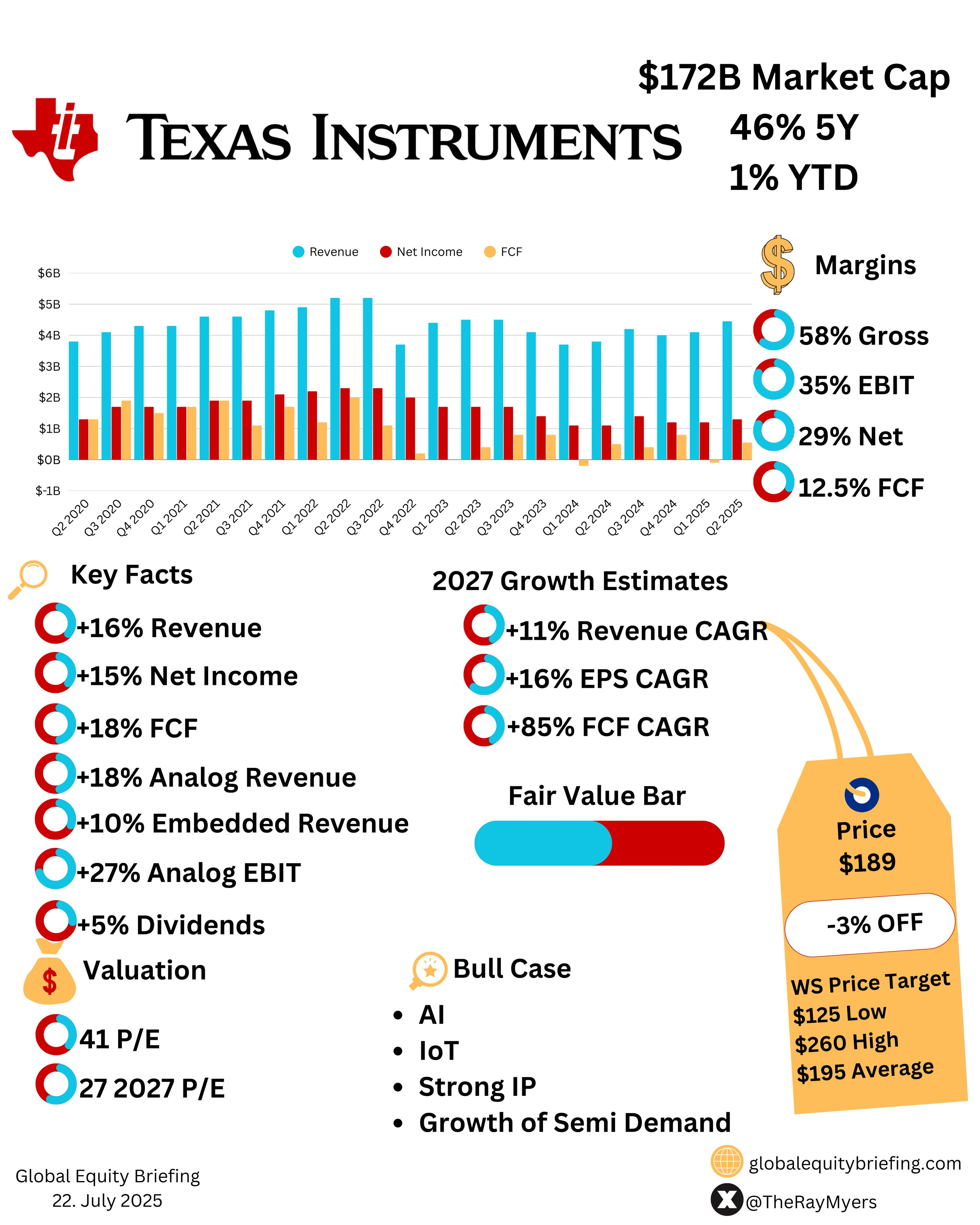 $Texas Instruments(TXN)$ announced Q2 earnings after the plunge, Q2 high growth is actually "tariffs to ripen", Q3 guidance exposure of endogenous demand weakness, valuation from the "recovery premium" to return to the "reality of pricingThe price of valuation has returned from "recovery premium" to "realistic pricing". The short-term focus is on whether industrial demand can offset the auto drag, while the long-term bet is on whether US manufacturing cost reductions can hedge against geopolitical risks.At this juncture, the market needs to digest the dual uncertainties of tariff policy and capital expenditure, and share price volatility will remain high.