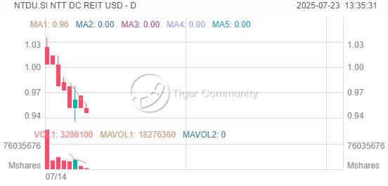 Next, focus on $NTT DC REIT USD(NTDU.SI)$ . As Singapore's largest IPO since 2017, it attracted much attention but had a dull debut: it opened at $1.03, the IPO price was $1.00, and the latest price was $0.945.