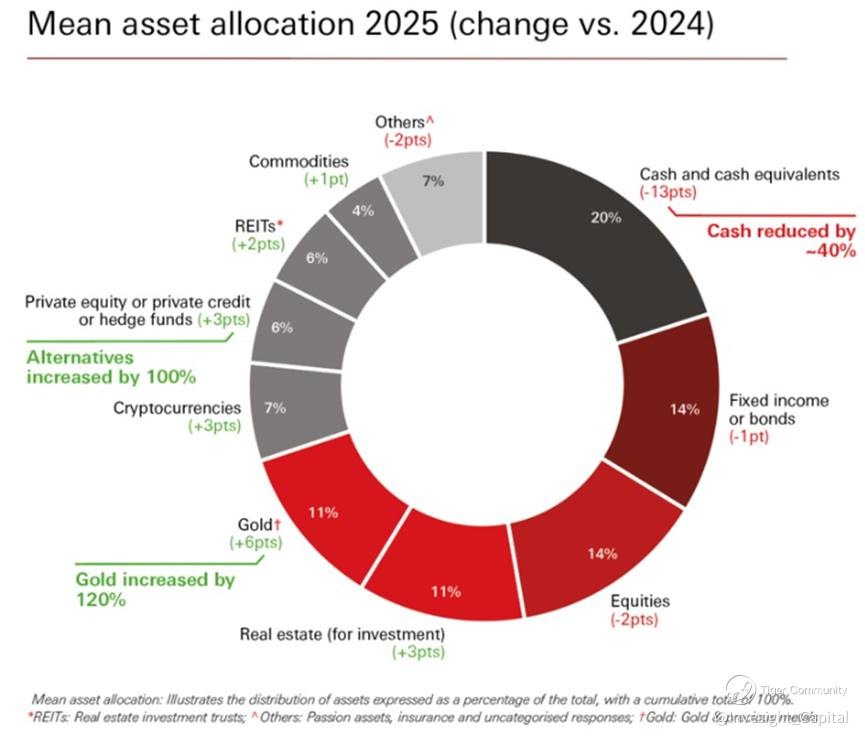 Amid a reconfiguration of the global economic landscape—exacerbated by rising trade frictions and policy uncertainty—investors are reshaping their asset allocation strategies. According to HSBC’s $HSBC Holdings PLC(HSBC)$ “Affluent Investor Snapshot 2025: A Quality of Life Special Report”, savvy investors are increasingly turning to alternative assets such as gold, real estate, hedge funds, and private equity. This shift is not a short-term response to volatility, but rather a long-term structural transition based on three strategic drivers: