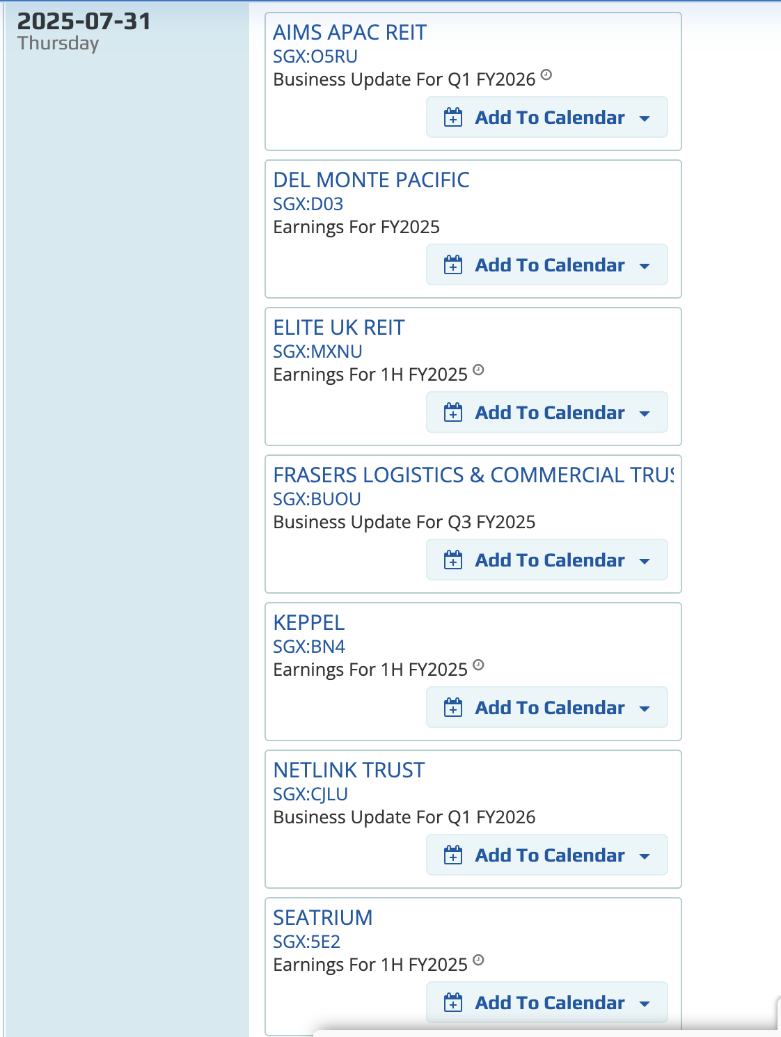 I think now is a good time to buy even though it has hit its 52week high. Analyst put the target price at $3.40 but I think there will be more room to climb especially when rate cuts lend more momentum and I expect its DPU to continue to rise. Of the upcoming ones on 31/7, I am not bullish on them. I am bullish for Ascendas and mapletree industrial as they ride the same wave as kepple dc reit.