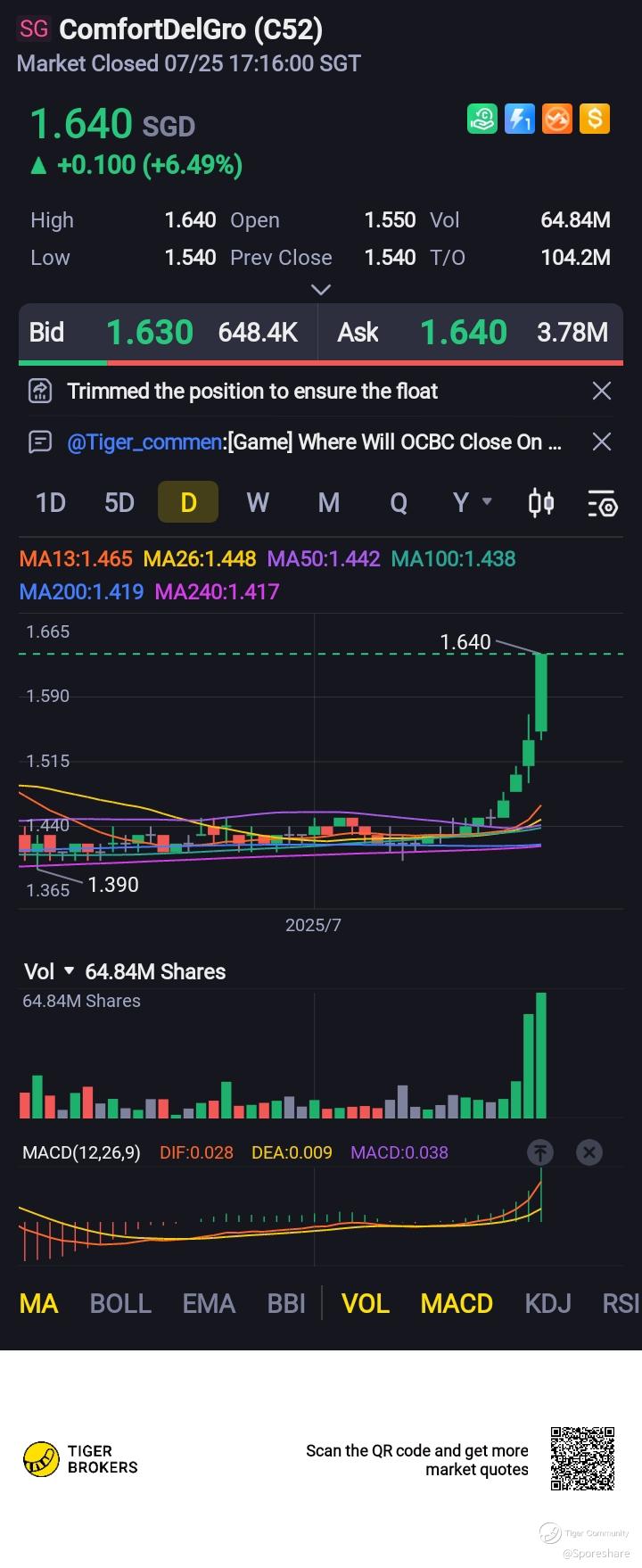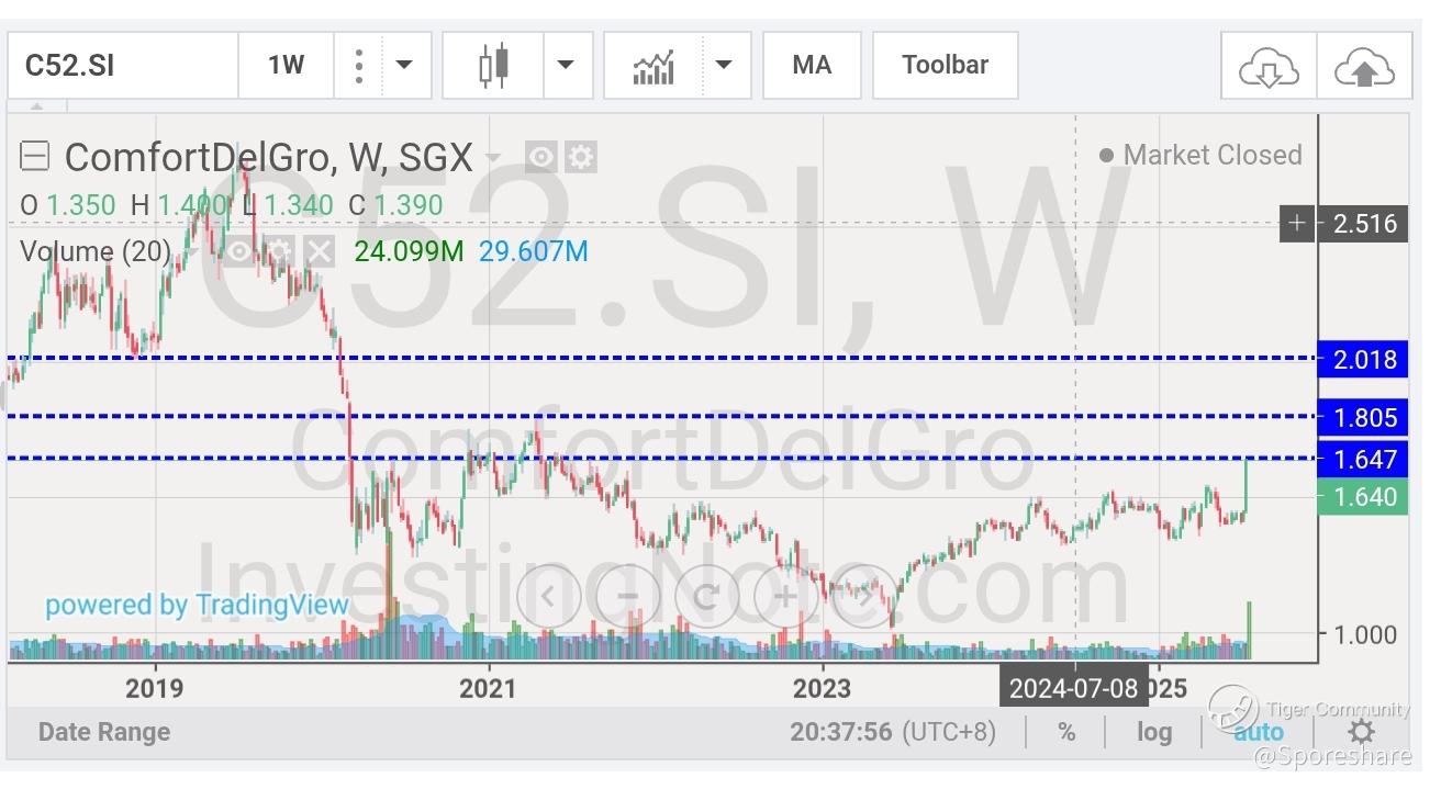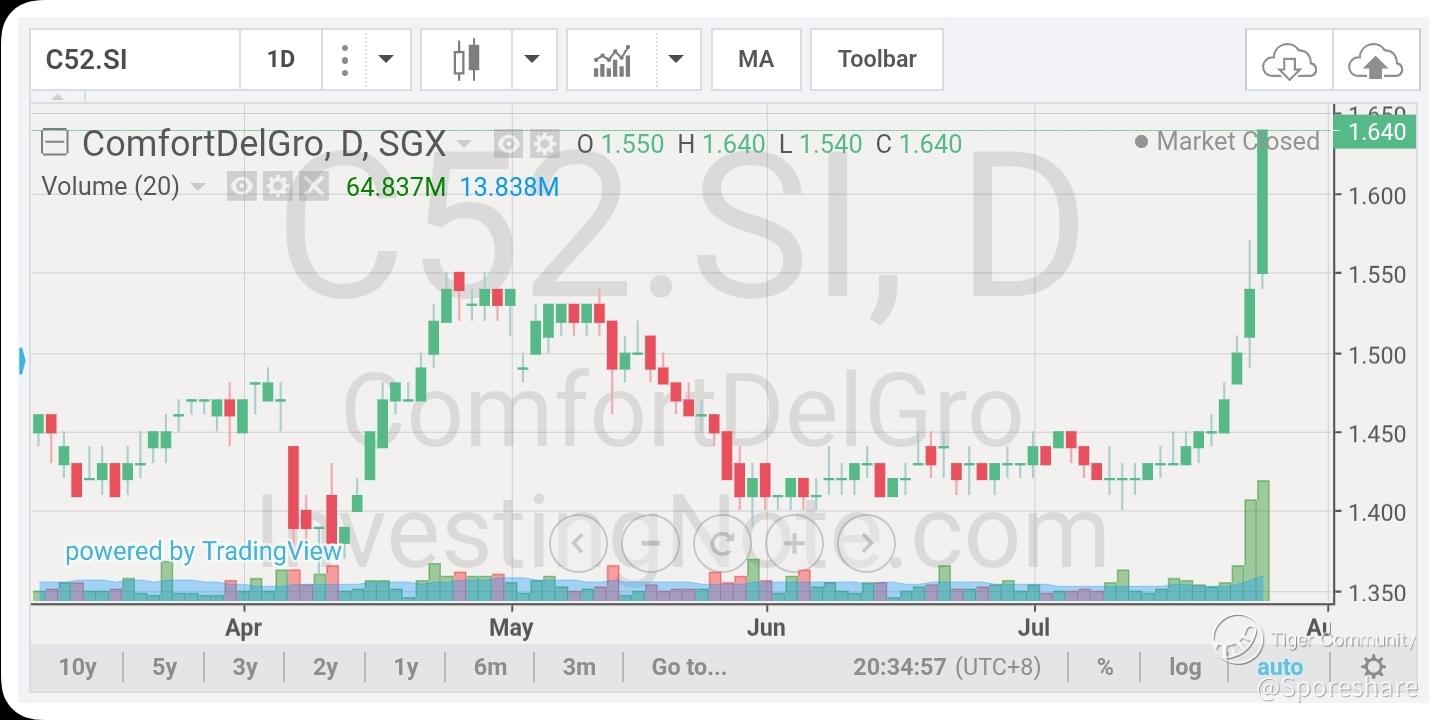 ComfortDelGro - the last few days transacted price is very gd and price has shoot up from 1.50 to close well at 1.64, looks like Big Boys are playing!