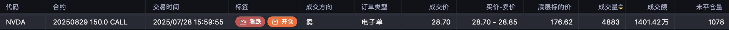 Deep ITM Call Selling: A trader sold $NVDA 20250829 150.0 CALL, a strategy equivalent to shorting the stock. This suggests they’re betting on a pullback after earnings.