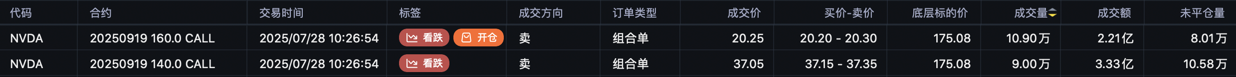 Bearish Call Spread: Another trader executed a bearish call spread by selling $NVDA 20250801 182.5 CALL and buying $NVDA 20250801 185.0 CALL, further contributing to this week’s record-breaking OI.