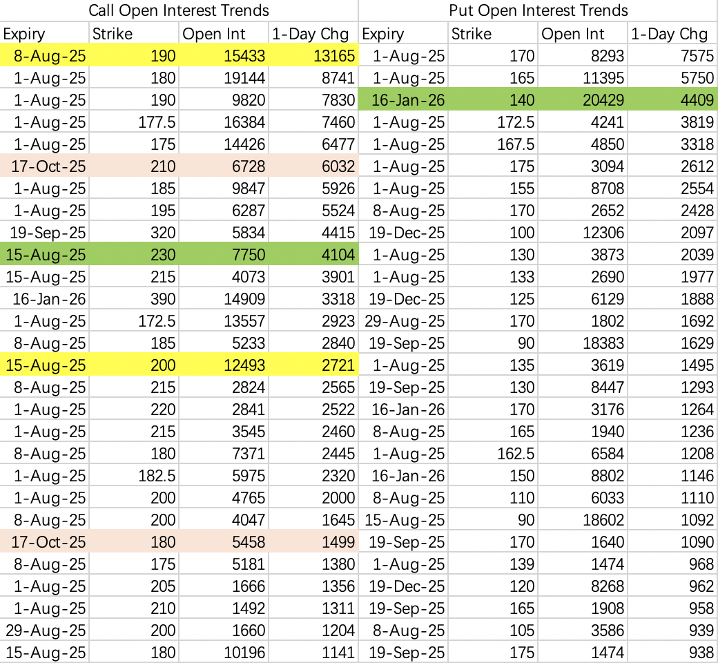 There’s also a bullish call spread for mid-August: buying $AMD 20250815 200.0 CALL and selling $AMD 20250815 230.0 CALL.