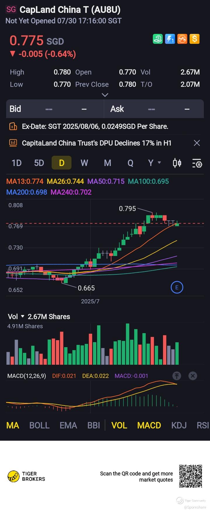 CLCT’s 1H 2025 Distribution Per Unit (DPU) was 2.49 Singapore cents. The lower DPU