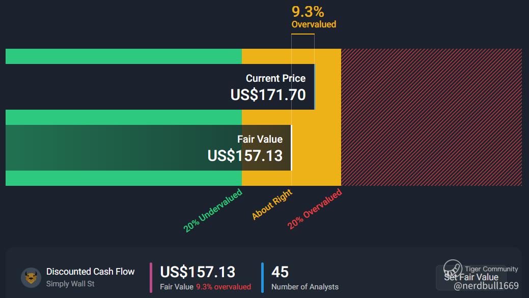 Based on 45 analysts using the Discounted Cash Flow, AMD is overvalued by 9.3% from its fair value $157.13.