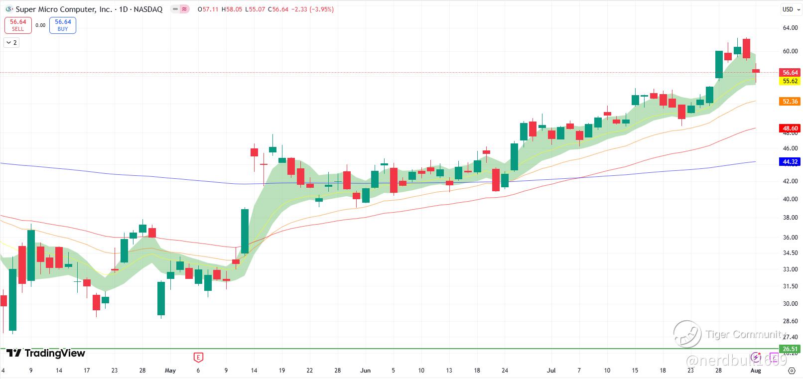 If we looked at how SMCI have been trading for the past two weeks, it is having pretty strong momentum, and the bulls are clearly in control, and even though we saw a decline on last Friday, SMCI managed to maintain the share price above the short-term 26-EMA level.