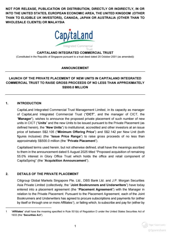 no less than approximately S$500.0 million from the Private Placement in the following