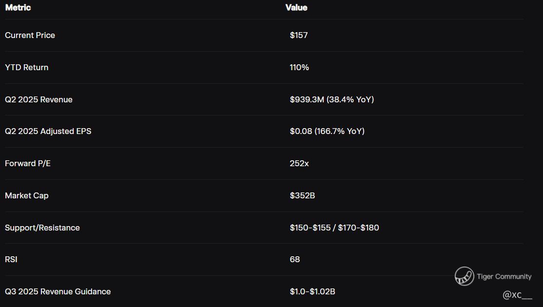 Palantir Technologies ( $Palantir Technologies Inc.(PLTR)$ ) has cemented its status as a market darling, soaring 110% year-to-date in 2025 to $157, and its Q2 2025 earnings report on August 4, 2025, has only fueled the fire. The company delivered a resounding beat on revenue and EPS, surpassing Wall Street expectations, with its Artificial Intelligence Platform (AIP) driving explosive growth in both government and commercial sectors. The stock surged 4% at the close and jumped another 5% in after-hours trading, reflecting robust investor confidence. Citi’s bullish pre-earnings call for a 2-3 point revenue beat proved prescient, but with a forward P/E of 252x and tougher comparisons looming in H2 2025, can Palantir sustain this momentum? Is it truly the one AI stock to hold forever? This deep dive explores Palantir’s earnings, AI-driven growth, valuation risks, and strategic investment approaches to navigate this high-stakes moment.