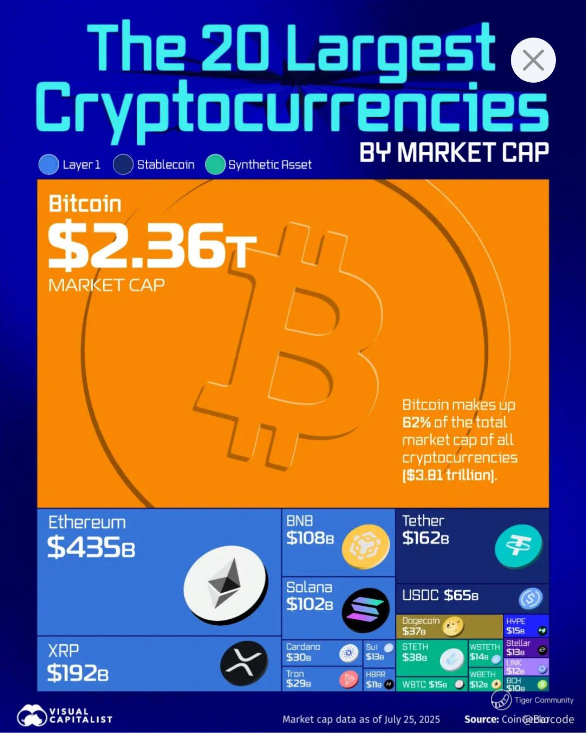 • Visual Capitalist data confirms: BTC now exceeds the combined cap of the next ten largest tokens.