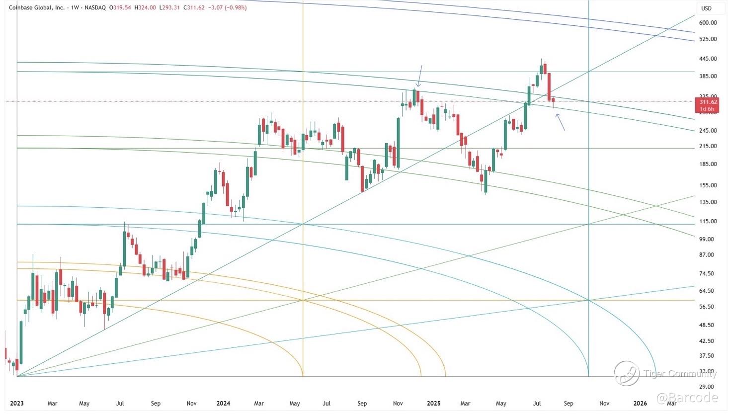 • $COIN broke above long-term weekly Gann arc resistance in Q2