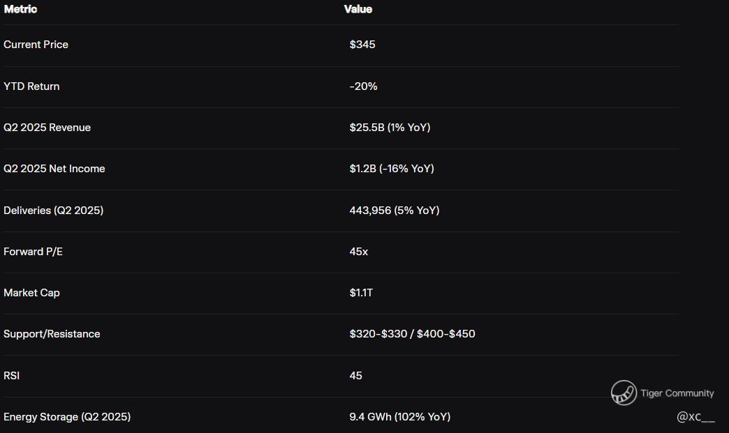 Tesla’s stock, down 20% YTD to $345, faces a critical juncture: