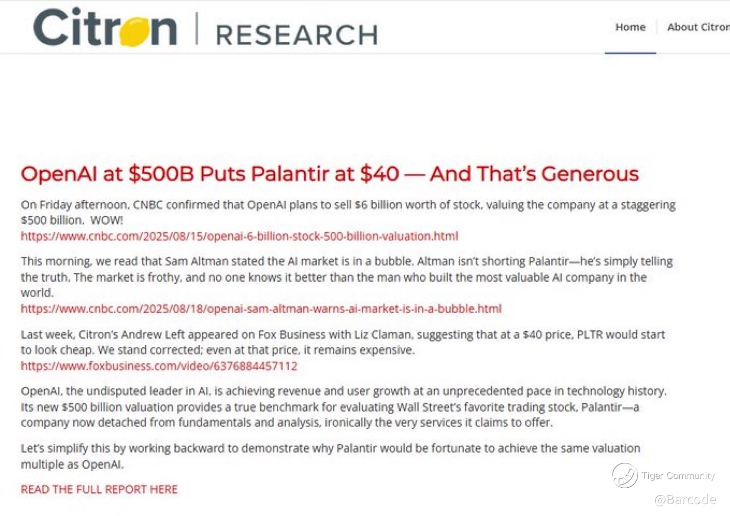 Andrew Left of Citron Research faces 19 counts including securities fraud and false statements tied to an alleged $16M manipulation scheme; the pre-trial hearing is set for 18Aug25 in Los Angeles. Despite this, Citron promotes a $40 target for Palantir after comparing OpenAI’s reported $500B valuation to the true operating system of AI. They argue $40 still looks expensive. I’m fully convinced that a call issued under this cloud deserves heightened scrutiny.