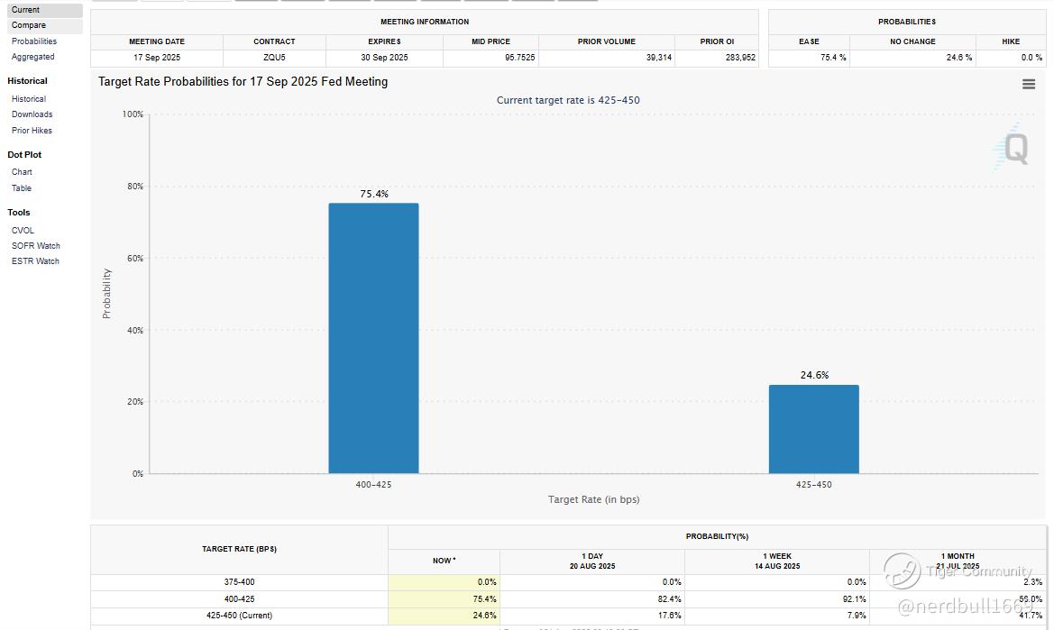 A V-shaped market recovery after Jackson Hole hinges on a decisive shift in the Fed Chair's tone. The market is already pricing in a high probability of a September rate cut, but a lack of explicit commitment could cause a sharp sell-off. For a strong rally, the Fed Chair must provide a clear, dovish signal, moving beyond his previous "data-dependent" stance to acknowledge recent signs of a weakening labor market.