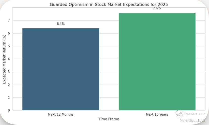 Key Highlights from the Chart: Expected Market Returns:6.4% over the next 12 months 7.6% annually over the next 10 years These figures reflect sustained optimism, though tempered by valuation concerns and macro uncertainty.
