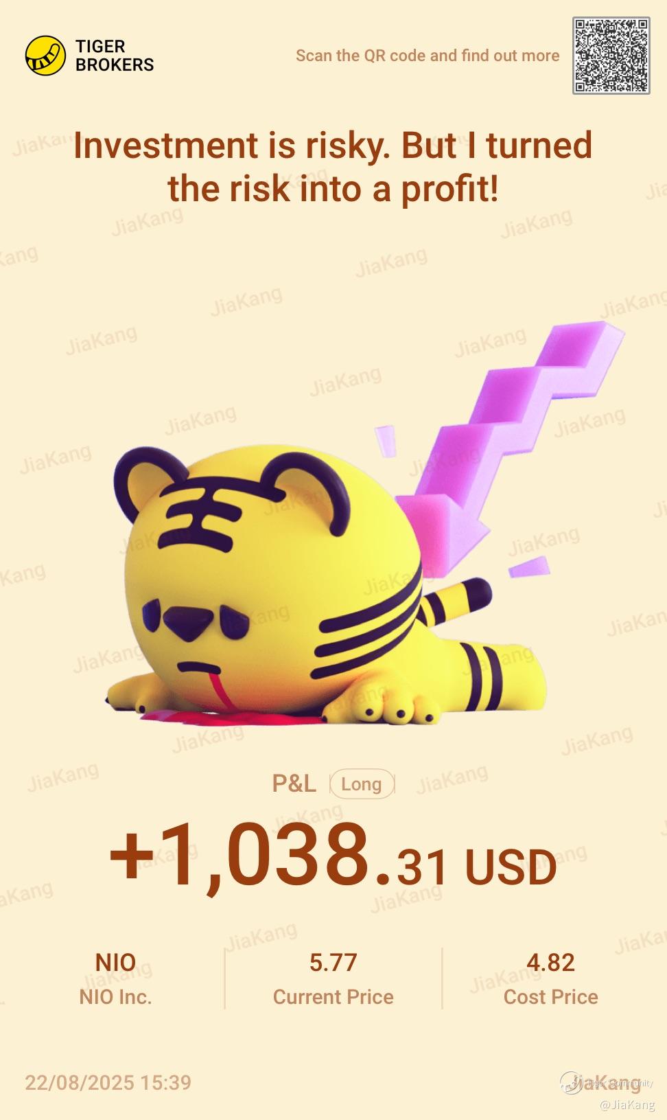 $NIO Inc.(NIO)$ Taking small profit soon and probably regret later when US market opens