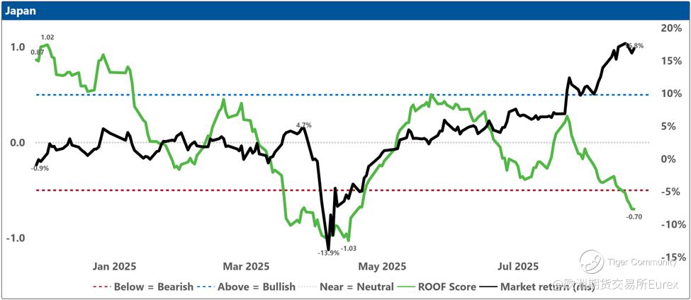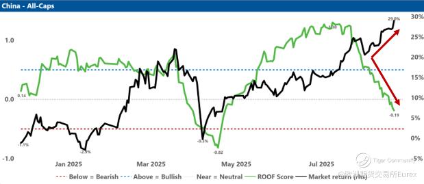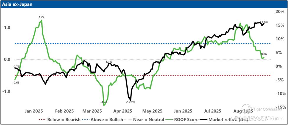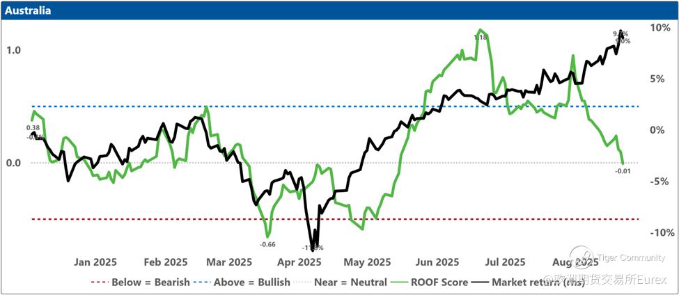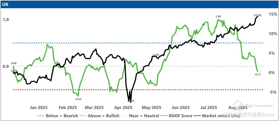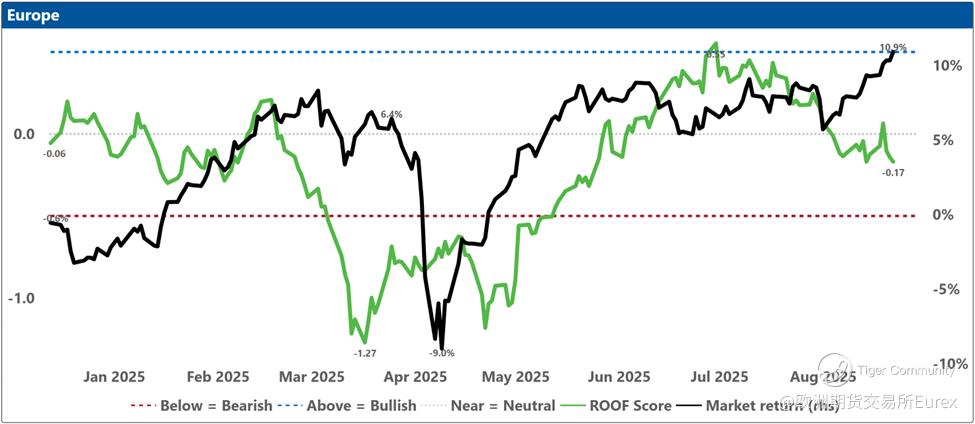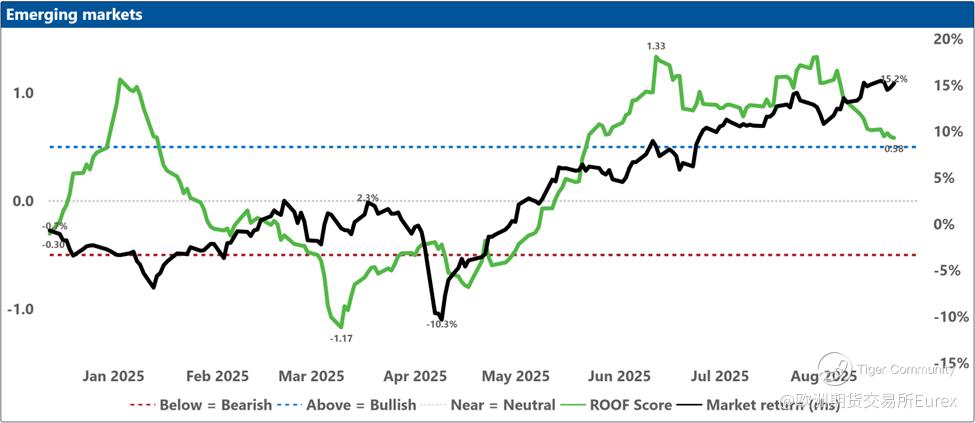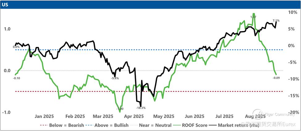 Over the past two weeks, investor sentiment has dropped sharply across almost every market we track, with only Global Emerging Markets managing to maintain a positive sentiment risk premium. Ongoing uncertainties—such as stalled peace talks in Ukraine, escalating tensions in the US-China chip dispute, and mounting concerns about the independence of the Federal Reserve—have made investors increasingly wary. Despite this, Powell’s uncharacteristically direct remarks on Friday regarding the likely outcome of the upcoming FOMC meeting sparked a widespread rally in US markets, driving them to record highs. Unless the upcoming PCE data delivers a negative surprise, the recent optimism about potential rate cuts could fuel a rebound in sentiment this week.