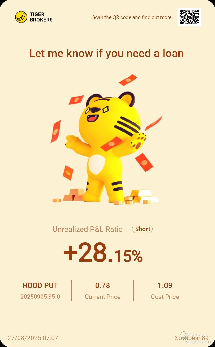 Share your positions with us! This is a column where you can find the winning trades of our fellow tigers. There probably are a few potential opportunities that you may have overlooked.