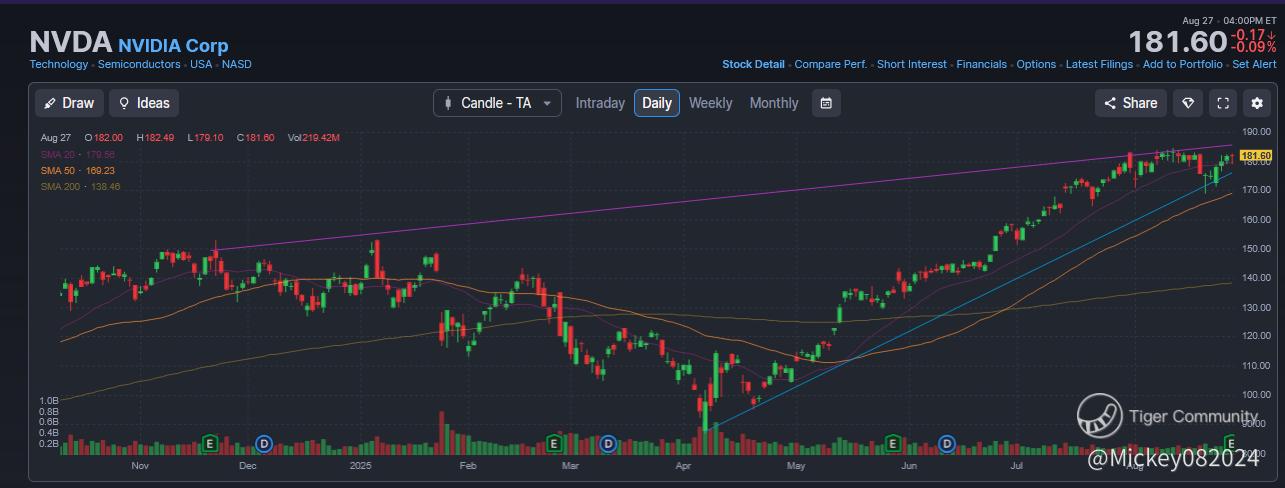 If Nvidia delivers another earnings beat plus strong forward guidance, $180 could easily become a springboard toward Wall Street’s average target of $194—or higher.