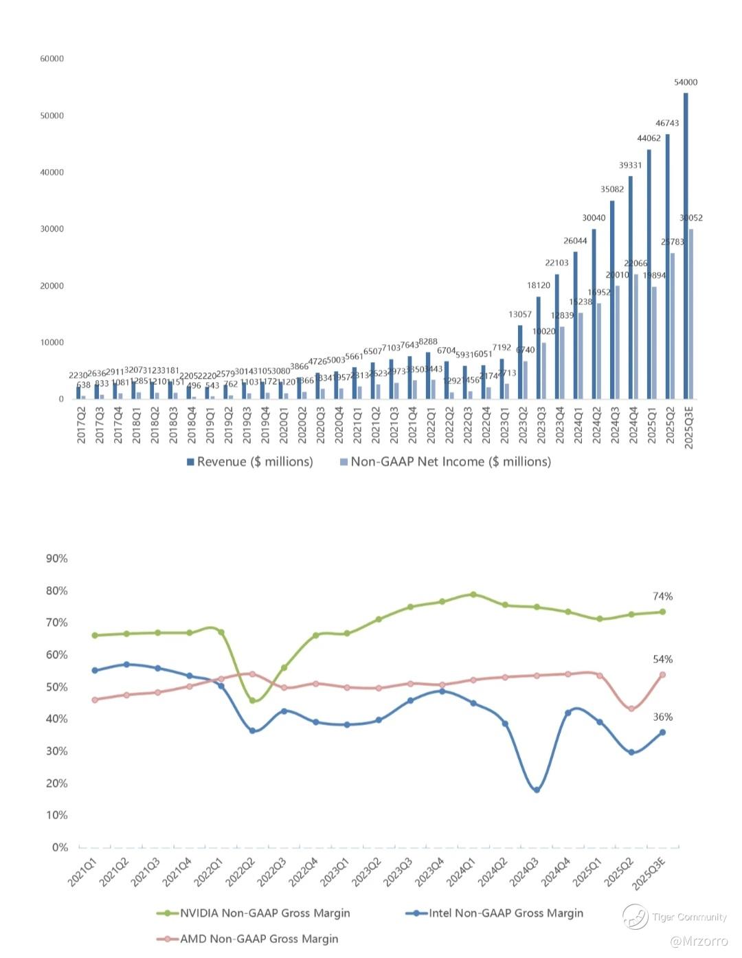 ~Non-GAAP net income: $30.1B.Importantly, no H20 to China is assumed, yet revenue is up $7.3B QoQ, a company record, driven by Blackwell's ramp. Management continues to target ~75% Non-GAAP GM in Q4.