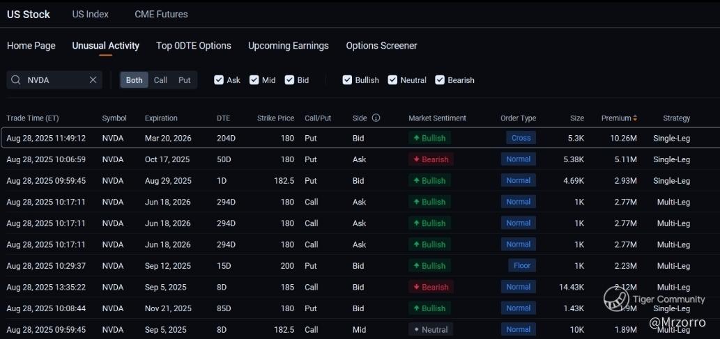 Seven of the 10 biggest block trades in Nvidia options were bullish. The largest block trade posted so far Thursday involved an active seller getting a $10.3 million premium for selling put options that give their holders the right to sell 530,000 Nvidia shares at $180 each in 204 days.