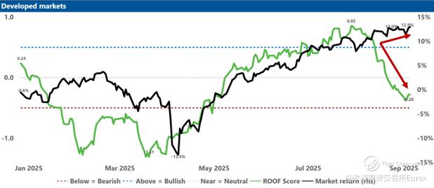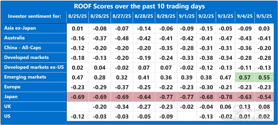 Investor sentiment rebounded slightly last week, ending a month-long decline, as renewed hopes for lower U.S. interest rates lifted most markets. However, sentiment in European and Global Developed ex-U.S. markets remained unchanged, reflecting their heightened sensitivity to tariff negotiations rather than monetary policy—especially now that the ECB is widely believed to have concluded its rate-cutting cycle. Japanese investors stayed bearish, though slightly less so than the previous week, as leading indicators continue to signal a slowing economy. Sentiment in Global Emerging Markets returned to bullish territory, driven more by a decline in risk aversion than by increased speculative appetite. Across all markets, the balance between the supply and demand for risk is near equilibrium, suggesting a lack of emotional bias ahead of this week’s U.S. inflation data and next week’s FOMC meeting.