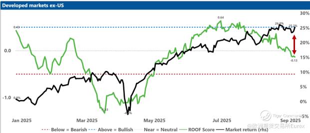The month-long divergence between declining sentiment and rising markets has eroded the positive sentiment risk premium that supported July’s rally. It now feels as though geopolitics is the Rosetta Stone investors are trying to translate—and the low volatility levels suggest that they are not looking to sentiment for help.