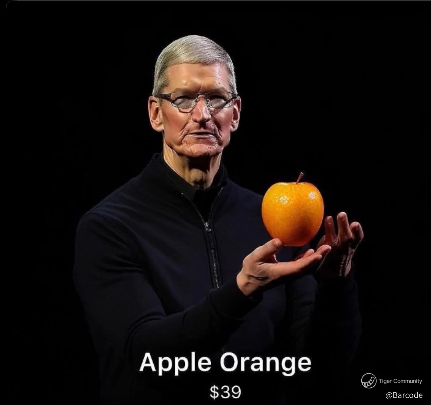 Satire says Apple Orange; margins get squeezed; moats keep the pulp.