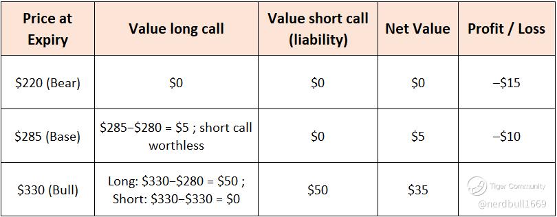 If we believe Bull ($330) is likely, long calls or wide call spreads give good leverage.