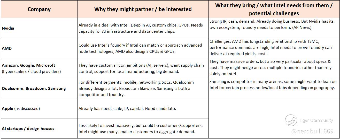 Logically next tech giants that might partner with Intel in similar ways (as customers for its foundry services or for co-development/investment) include: