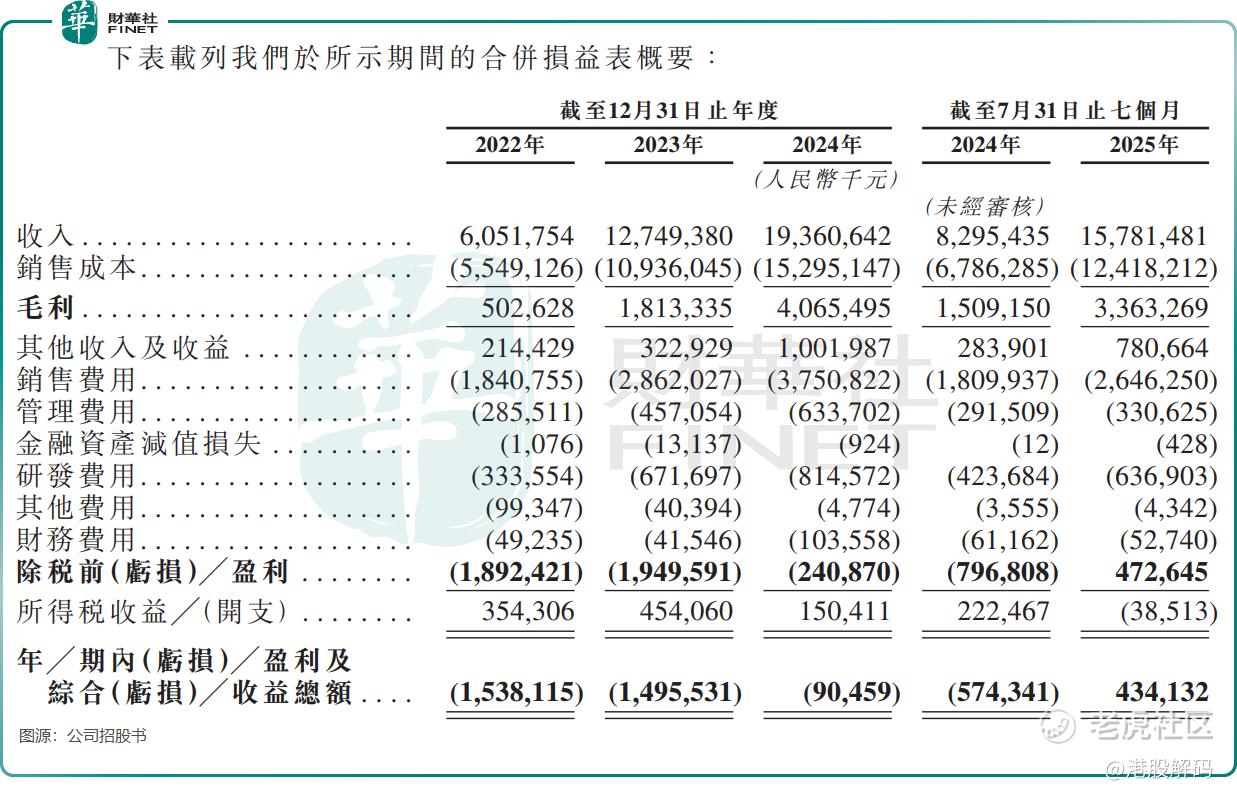 2022年至2024年,公司收入從60.52億元增長至193.61億元,複合年增速達78.9%;虧損則從15.38億元大幅收窄至0.9億元。2025年前7個月,嵐圖實現收入157.81億元,同比增長90.2%,並強勢扭虧爲盈,盈利4.34億元。