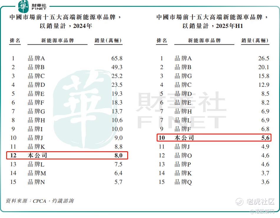 這一迅猛增長使其行業地位不斷提升。以2025年上半年銷量計,嵐圖以5.6萬輛的成績位列中國高端新能源品牌第十名,較2024年提升兩個名次。