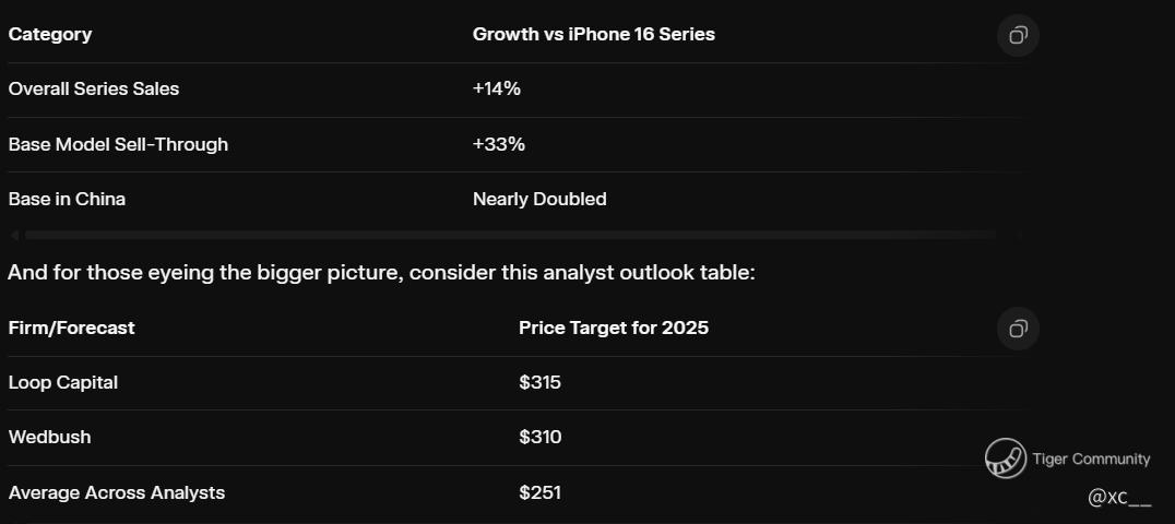 $Apple(AAPL)$ Apple's latest powerhouse lineup is turning heads and wallets upside down, with the iPhone 17 series shattering early sales expectations and propelling shares to unprecedented levels. Wall Street is buzzing, upgrading ratings left and right as robust data from key markets signals a potential year-end surge that could redefine tech dominance.