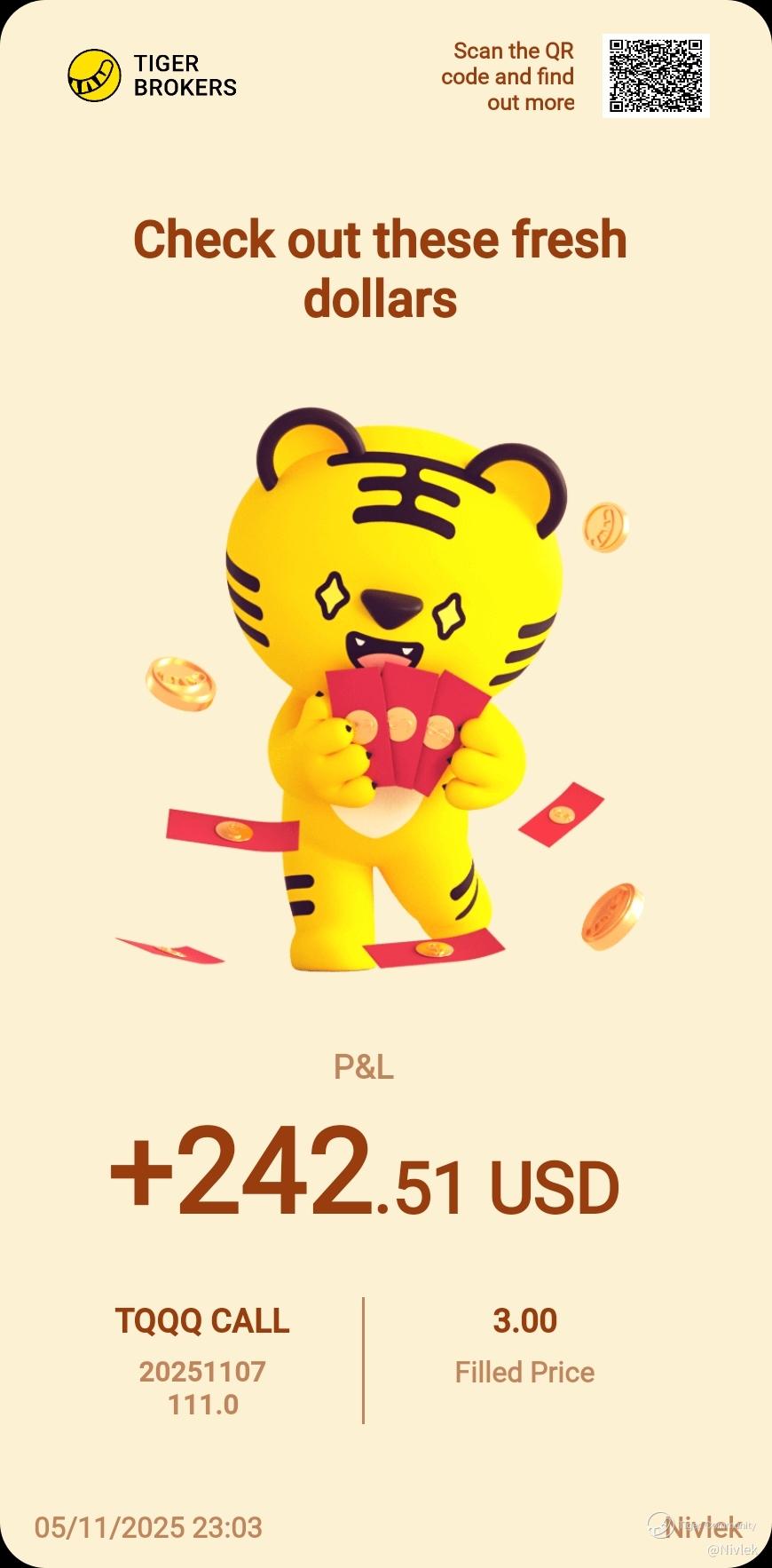 $TQQQ 20251107 111.0 CALL$ Did a 10min scalp trade. Hit and run đâď¸