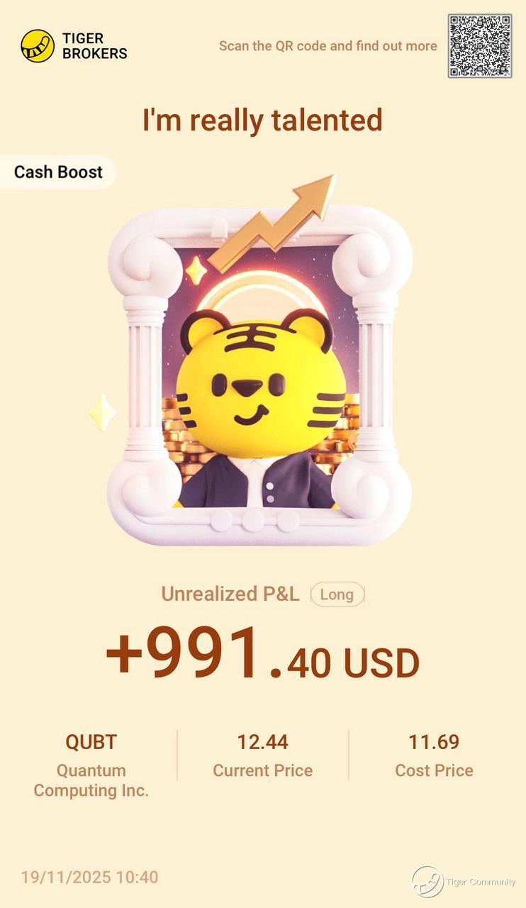 $Quantum Computing Inc.(QUBT)$ Made some nice gains on QUBT! Strong momentum here - ready to take off when the market stabilizes. Their new product roadshow exceeded expectations, future looks bright. Perfect timing to use my Contra688 vouchers for more shares - gotta maximize this free boost!
