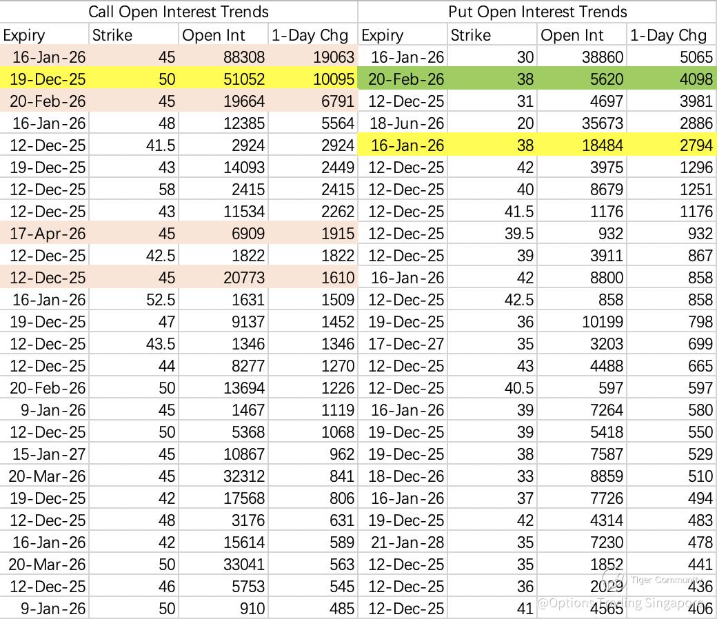 However, someone opened 10k contracts of the 50C $INTC 20251219 50.0 CALL$ . The intent is unclear; total premium was only about $320k. For many stocks this might look like retail flow — for Intel, it’s harder to interpret.