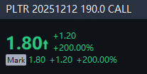 A total number of 799.84K options related to $Palantir(PLTR)$ was traded on Wednesday, up 247% from the previous trading day, of which call options accounted for 59%. Particularly high volume was seen for the $190 strike call option expiring Dec. 12, with 66,103 contracts trading.