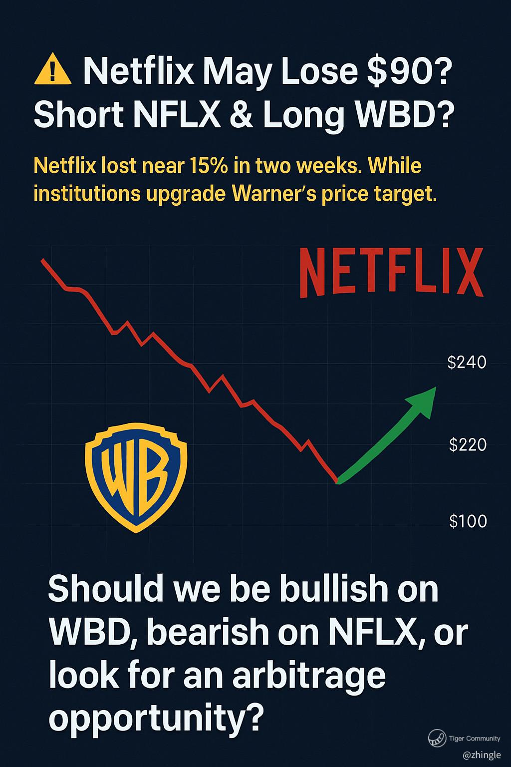 Then the pair trade idea becomes interesting — short NFLX, long WBD, or at least monitoring the spread.