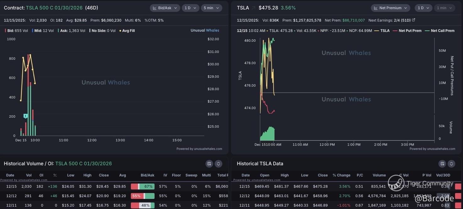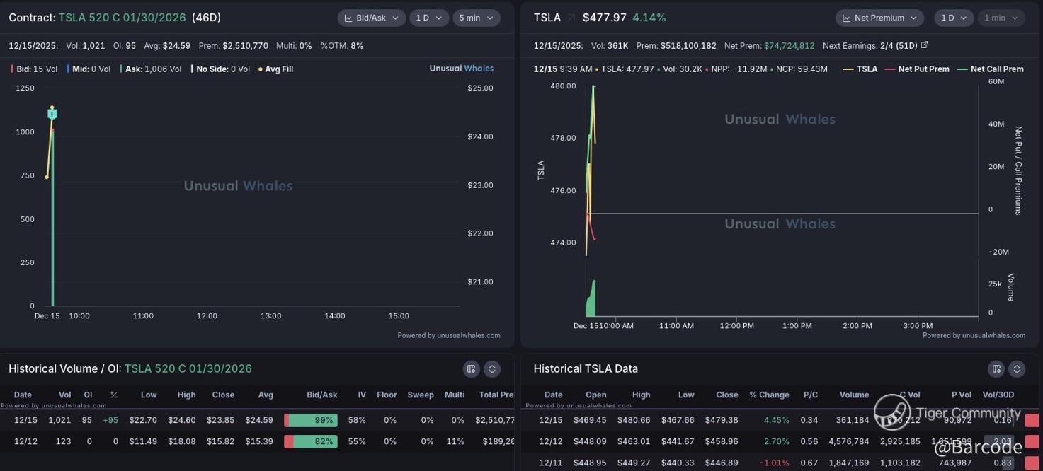 Flow continues to confirm the chart. A notable $2.5M call position went up in the $520 strike for 30JAN2026, with additional bullish exposure pushing total call premium north of $6M across longer dated structures. More importantly, positioning has extended further out the curve, reinforcing long duration conviction rather than short term speculation.