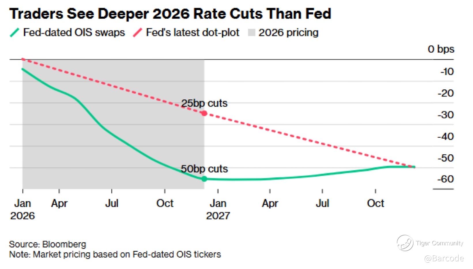 If traders are right, Treasuries could be setting up for their best year since 2020! Options traders are already positioning for a sentiment shift toward a Q1 rate cut, even as futures don’t fully price the next move until mid-year, with a second cut penciled in for October. 👇